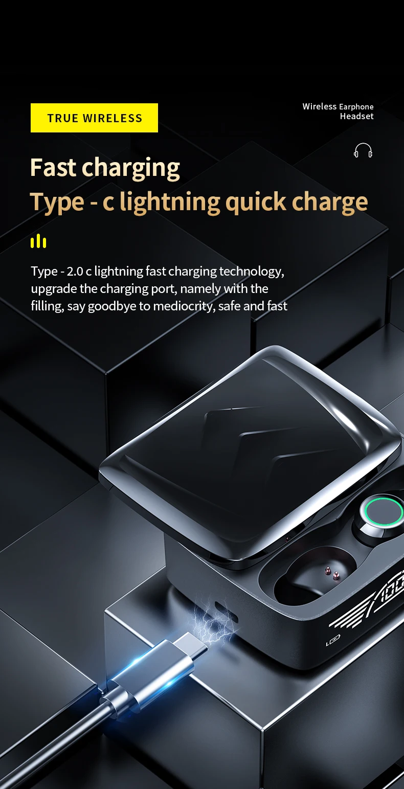 Кейс має напівпрозору кришку, через яку видно прогрес заряду навушників та самого кейсу.