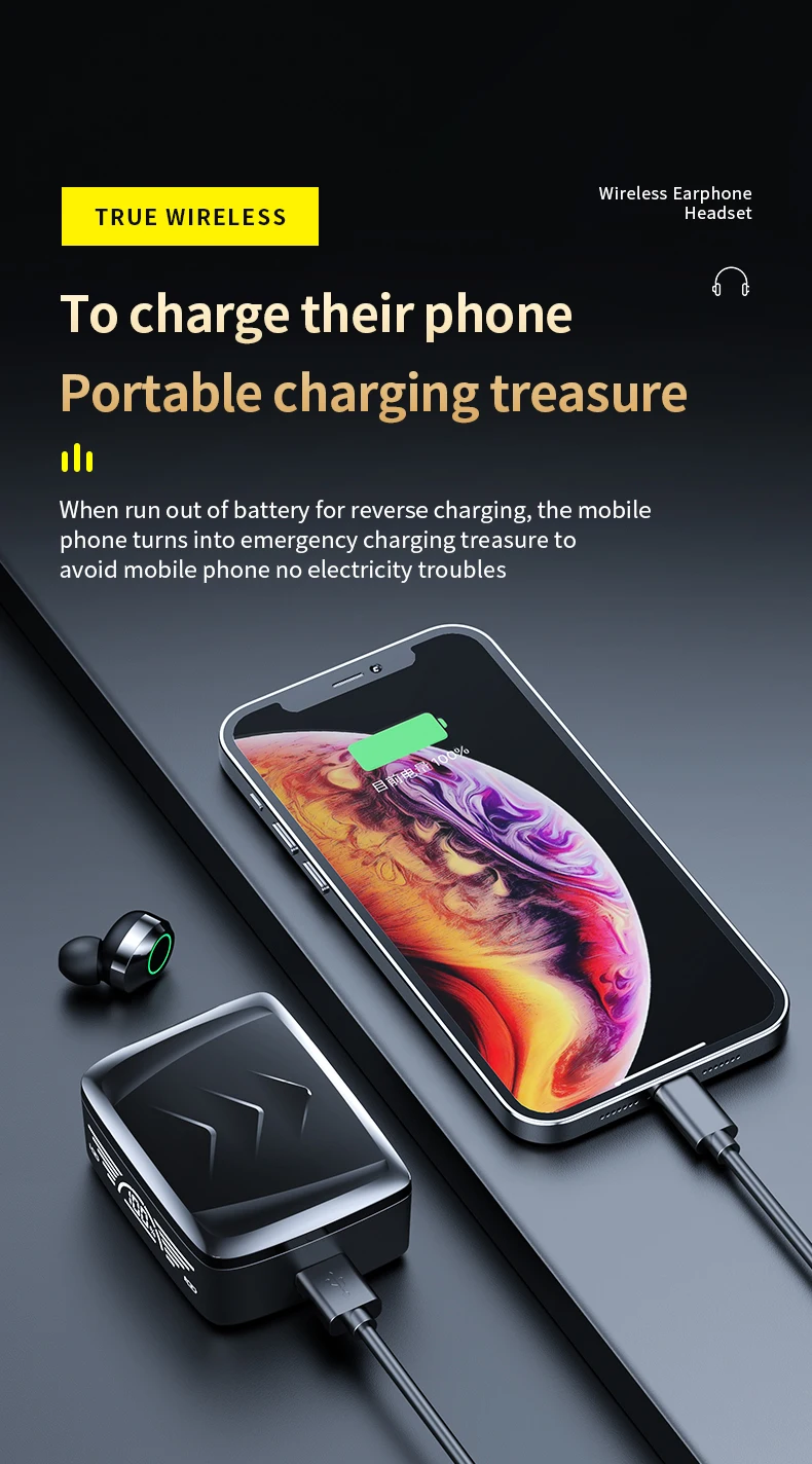 Наушники, зарядний кейс з можливістю заряджати від нього інші пристрої, кабель зарядки USB - microUSB, інструкція